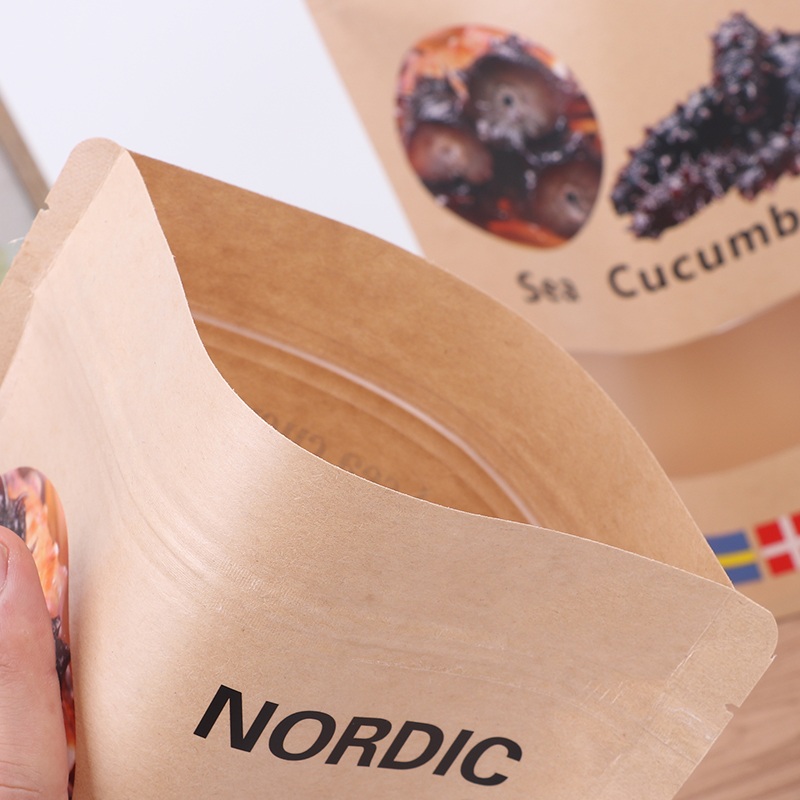 Ordinary Kraft bags have to lean against something to stand firm, our Doypack Kraft Paper Pouch can be placed steadily on any shelf or table. When taking something, you can see clearly what's inside at a glance without having to rummage through it.