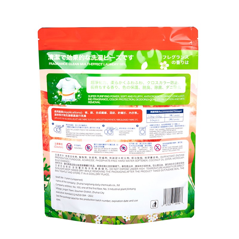 After pouring, first wipe the remaining laundry detergent at the bag opening clean with a clean cloth, then, hold the two ends of the zipper and slowly pull it towards the middle. When you reach the end, you can gently press the zipper area to ensure there are no gaps. When pouring laundry detergent, hold the bag with one hand and control the Angle of the pouring opening with the other, adjust the pouring speed as needed to avoid pouring too much at once and causing waste.