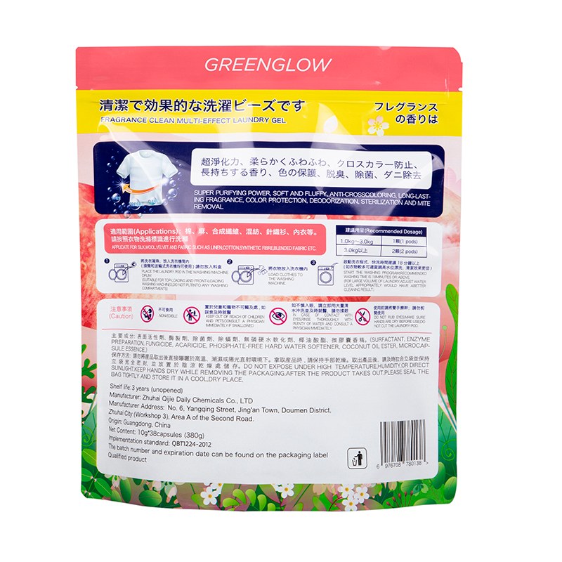 The core feature of Wanle's China Laundry Detergent Stand Up Pouch is its standing design, the bottom has undergone special shaping treatment. After being filled with laundry detergent, it can stand steadily on any flat place beside the washbasin or washing machine, unlike ordinary plastic bags that can only be placed lying down, it is also easy to spill.