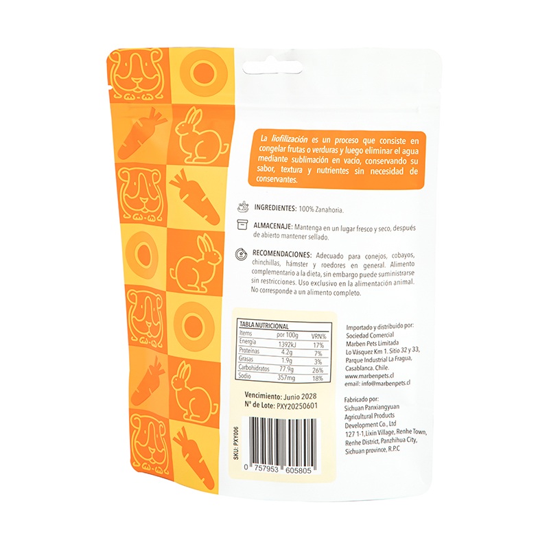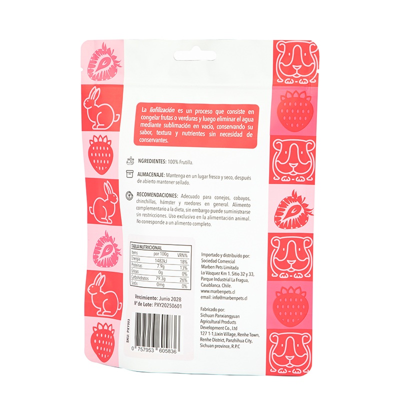 For multi-pet families, the "Other Pet Food Stand Up Pouch" can also be used to categorize and pack snacks for different pets. For example, dry mealworms for hamsters and grains for parrots can be packed separately and labeled so that they can be distinguished at a glance and not mixed and fed wrongly.